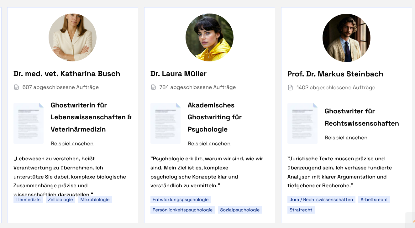 Frau Busch, Frau Müller und Herr Steinbach als allesamt Fakes – und keine Mitarbeitenden von WissPro.