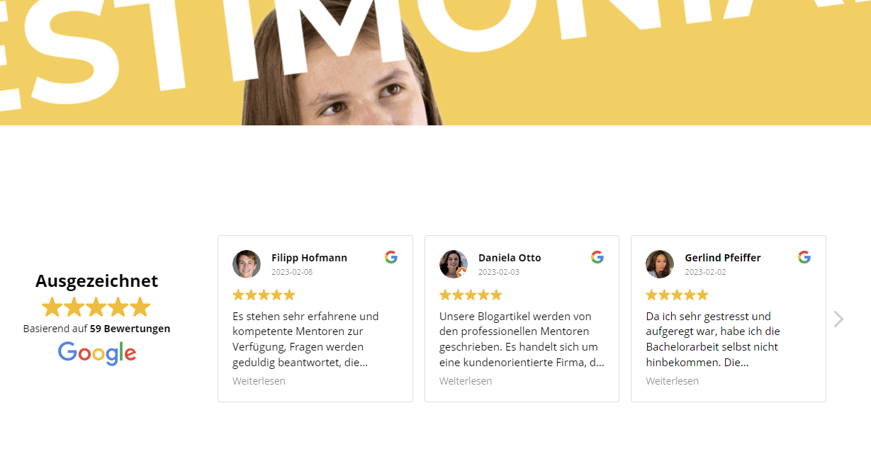 ei Manchmal muss man schon ein wenig genauer hinschauen, um den Betrügereien auf den Grund zu gehen. So auch bei den Schreibmentoren. Auf den ersten Blick wirkt alles sehr glaubwürdig. Das Büro und verschiedene Mitarbeiter existieren. Doch bei den Rezensionen zeigt sich, dass auch diese Anbieter mit Fakes auf Kundenfang gehen.