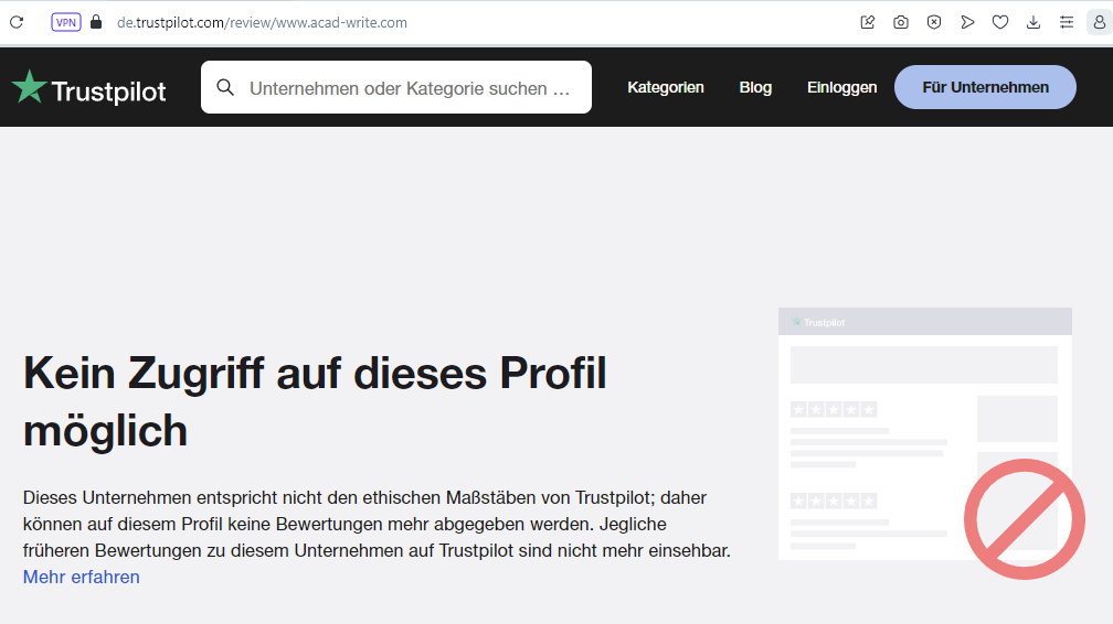 Viele bekannte Anbieter haben es überreizt. Acad Write wirbt z. B. damit, dass sie die besten sind und nennt dafür Gründe. Trustpilot hat das Acad Write-Profil gesperrt – wie das vieler anderer. Warum bloß?